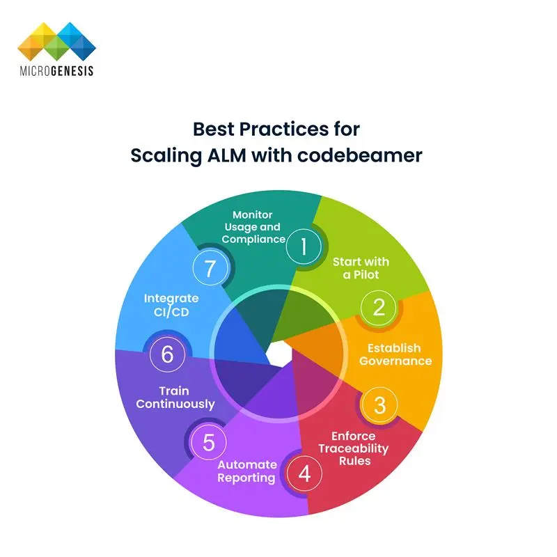 Scaling Application Lifecycle Management (ALM) across an enterprise requires structure, governance, and continuous improvement. As organizations grow, maintaining alignment and compliance across distributed teams becomes critical. The following best practices ensure a successful, sustainable rollout of codebeamer ALM.