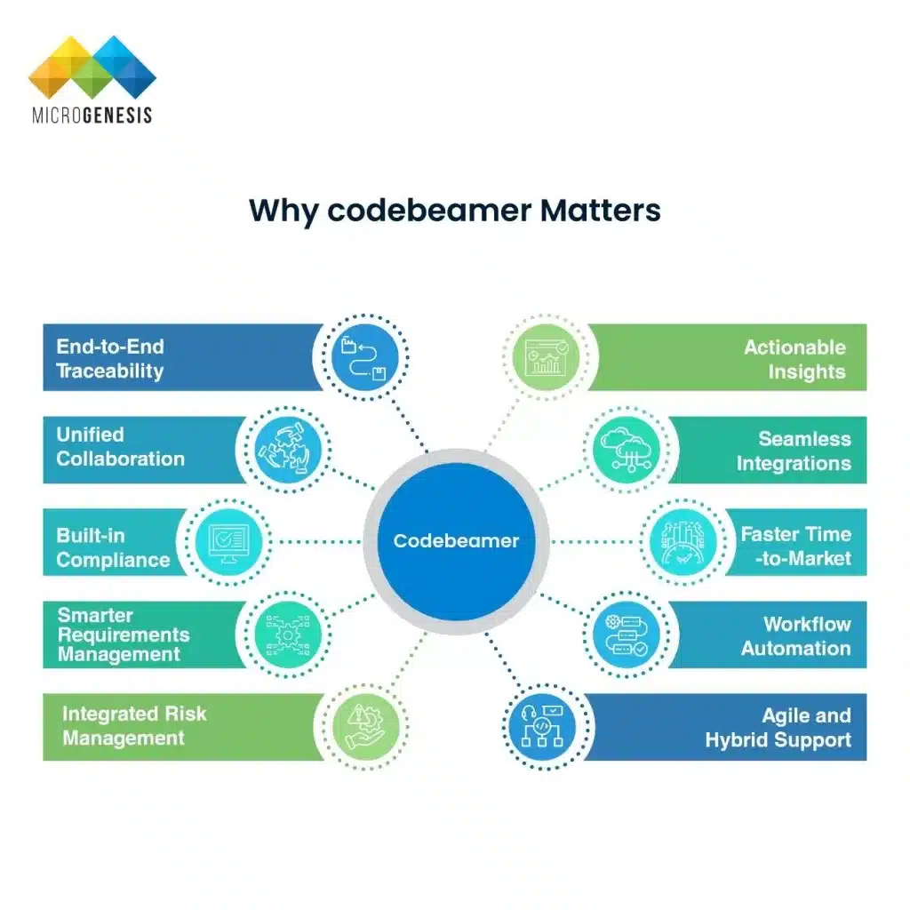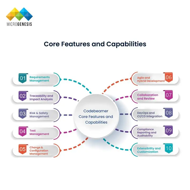 Below is a structured breakdown of codebeamer’s primary capabilities and how they support product development lifecycles.